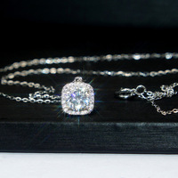 CAOSHI Exquisite Geometrische Quadratische Design-Halskette mit Rundem Zirkonia für Damen, Hochzeit, Silberfarben Plattiert, CZ-Anhänger