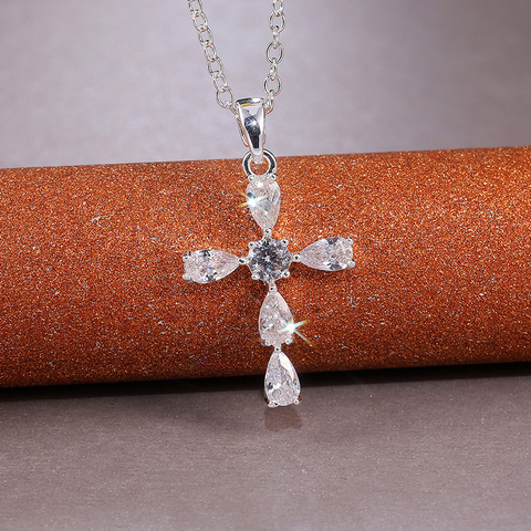 CAOSHI Collier pendentif croix en zircon étincelant en forme de poire fine pour femmes Colliers de fiançailles en argent plaqué CZ personnalisés