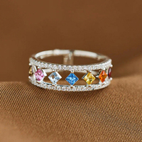 CAOSHI Dainty Deux Rangées Design Losange Multi Couleurs Brillant Zircon Anneaux pour Femmes Mariage Mode Fête Argent Plaqué Creux Anneaux