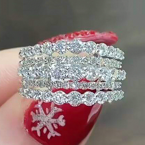 CAOSHI Exquisite Multi Layers Design 5 Reihen voll gepflasterte runde funkelnde Zirkon ringe für Frauen Verlobung versilberte CZ-Ringe