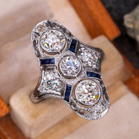 Caoshi แหวนเพทายระยิบระยับสไตล์วินเทจสีขาว/น้ำเงินแหวนหมั้นแหวนชุบเงินสำหรับงานแต่งงานเครื่องประดับสำหรับผู้หญิง